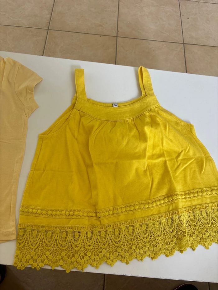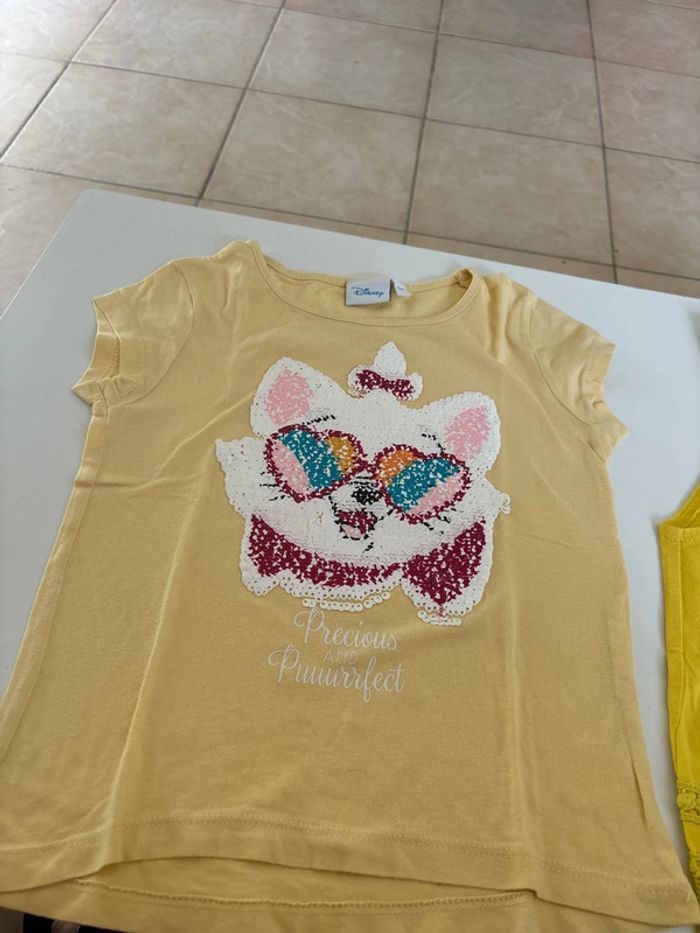 T-shirt jaune. 1 manche courte(Disney) et 1 sans manche(sans marque)