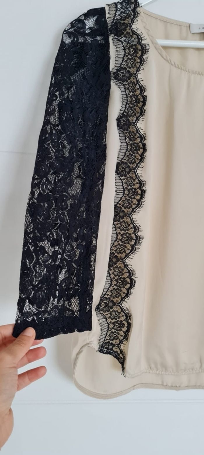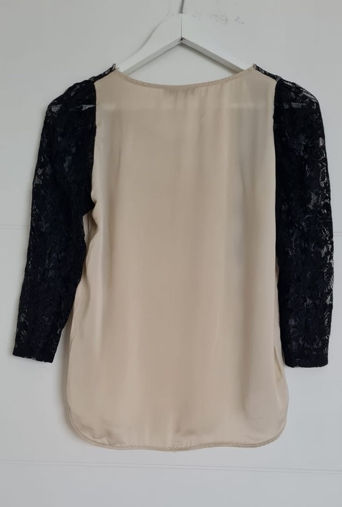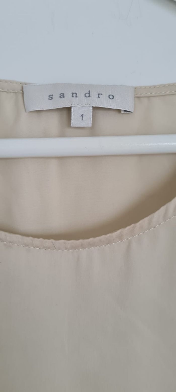 Haut, blouse en dentelle marque Sandro , taille 1 correspondant à un S , couleur beige et noir, manche 3 /4 , en très bon état.