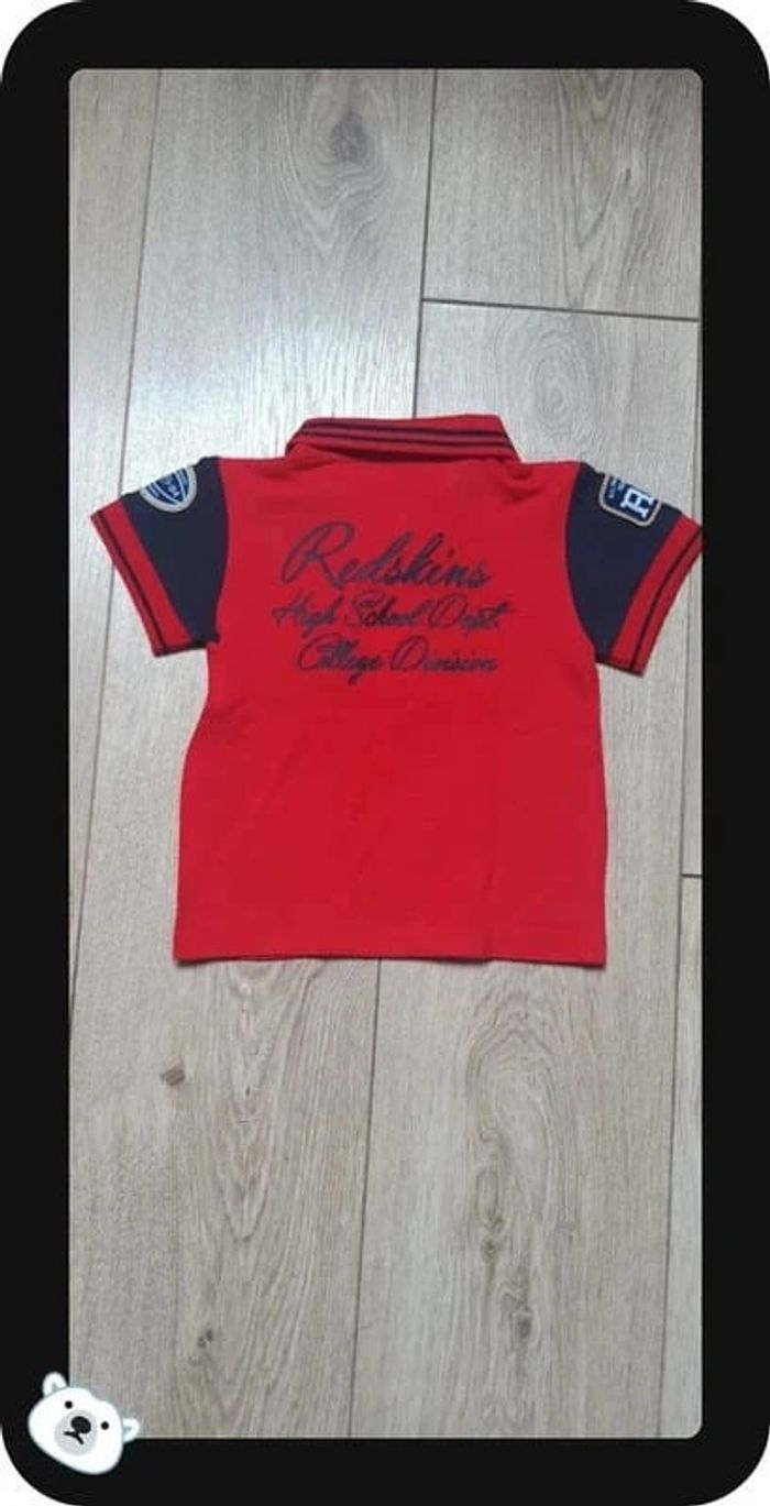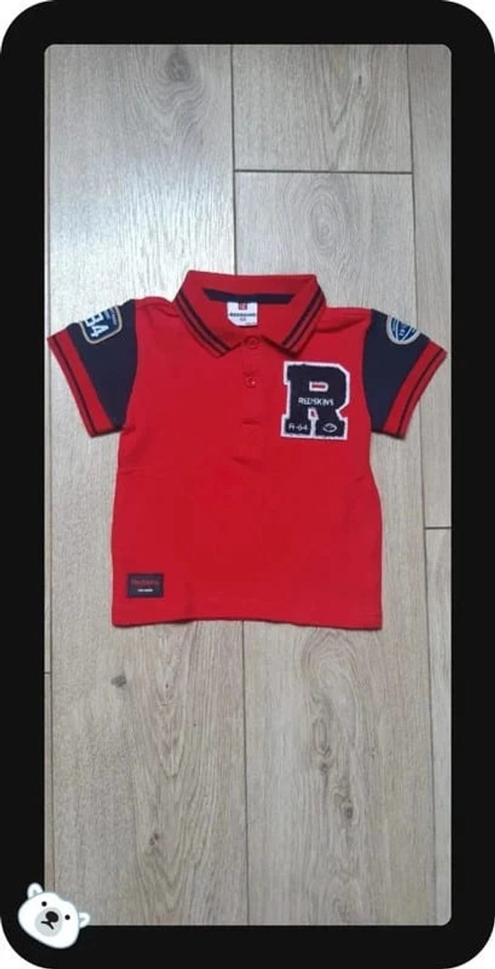 Tee-shirt polo MC redskins rouge & marine 2 ans état neuf - photo numéro 1