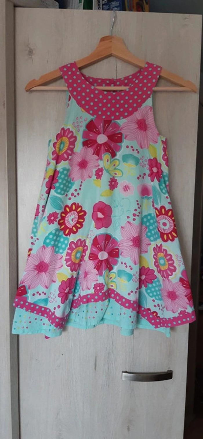 Robe orchestra bleu turquoise fleurie 8 ans en très bon état - photo numéro 1