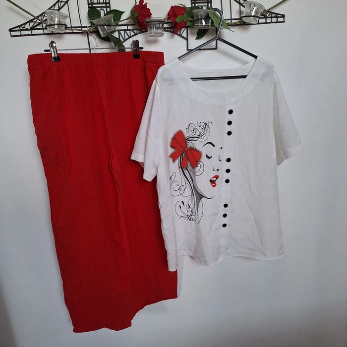 Ensemble Pantalon rouge et Tee-shirt blanc Taille XL Juste lavé #delph52taille42F