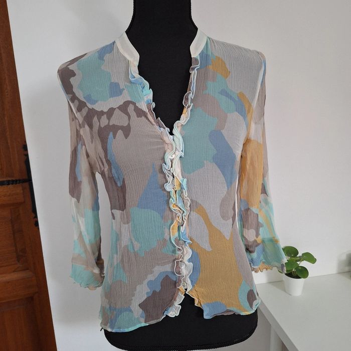 Chemisier transparent bleu vert crème Taille 36 #delph52taille36F
