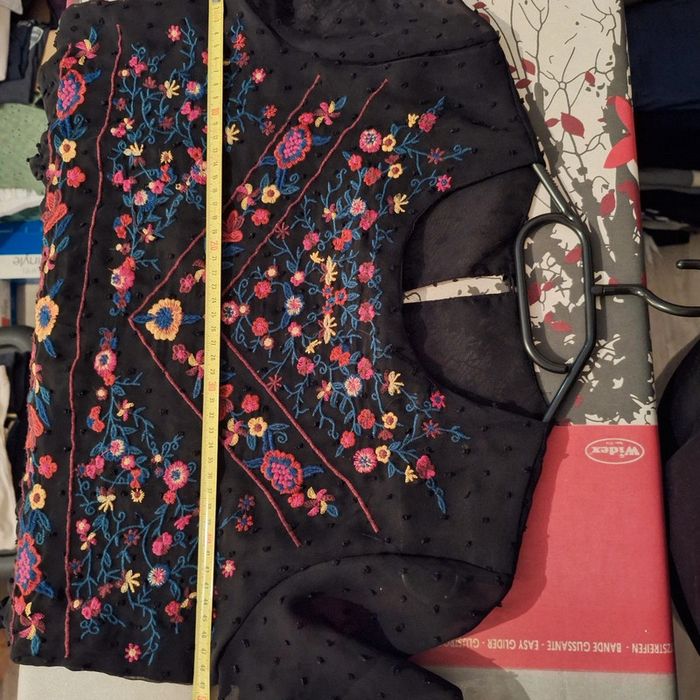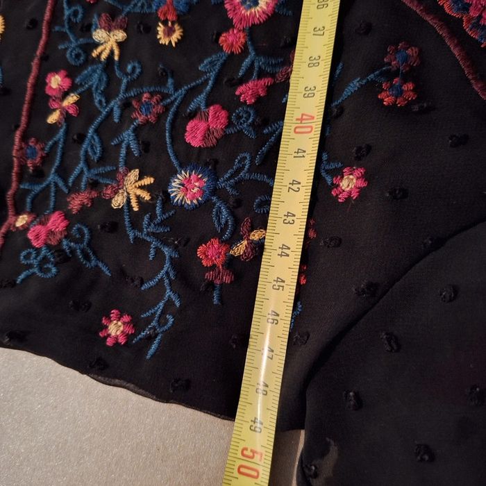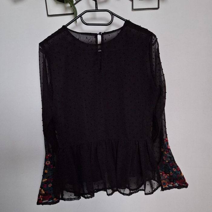 Blouse noir transparent mais doublée sur le corps Taille 36/S (pas d'étiquette) photo avec dimensions #delph52taille36F
