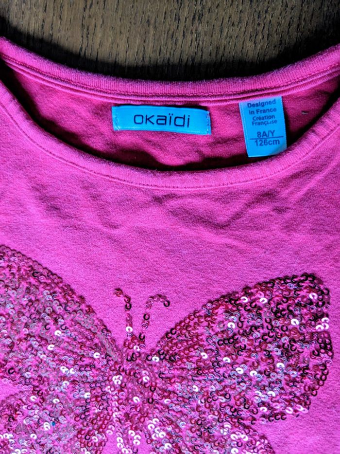 Tee-shirt manches longues okaidi 8 ans, papillon en sequin, en bon état Réduction sur les lots Merci d'éviter les envois par vinted go