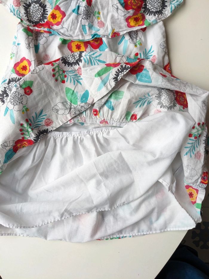 Jolie robe d'été en coton, marque orchestra, très bonne qualité, doublée avec un jupon, noté 8 ans mais taille petit, convient pour du 7 ans Réduction sur les lots