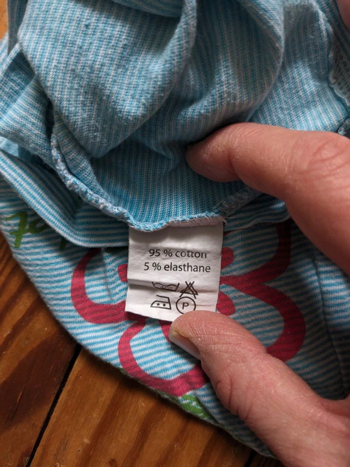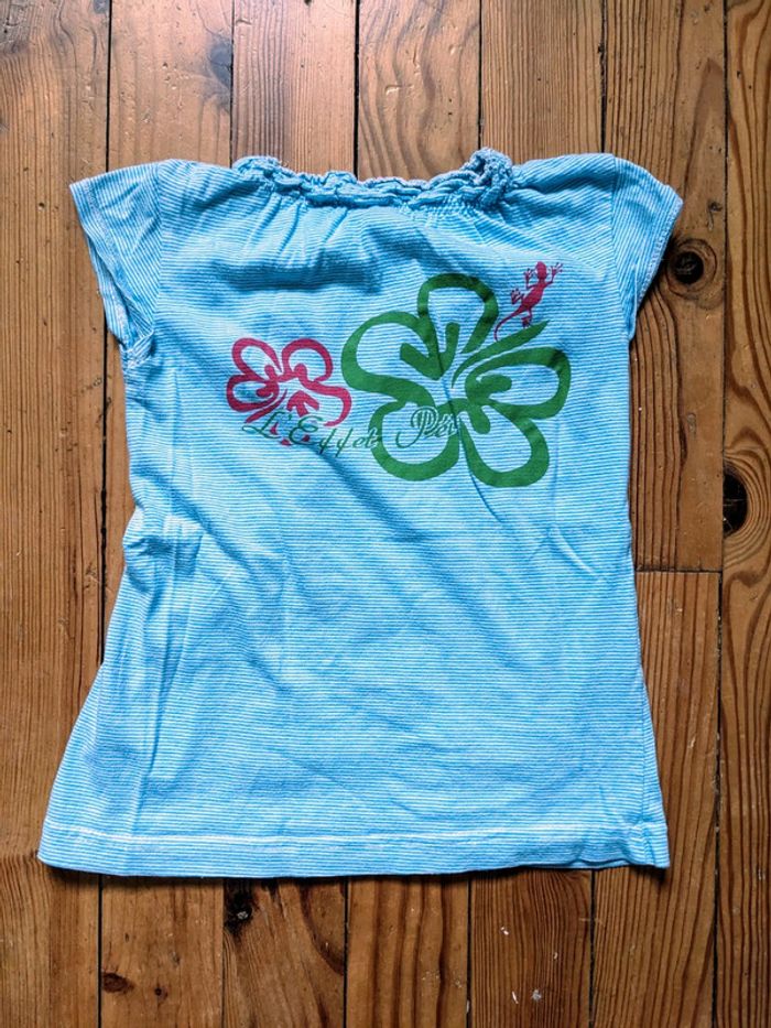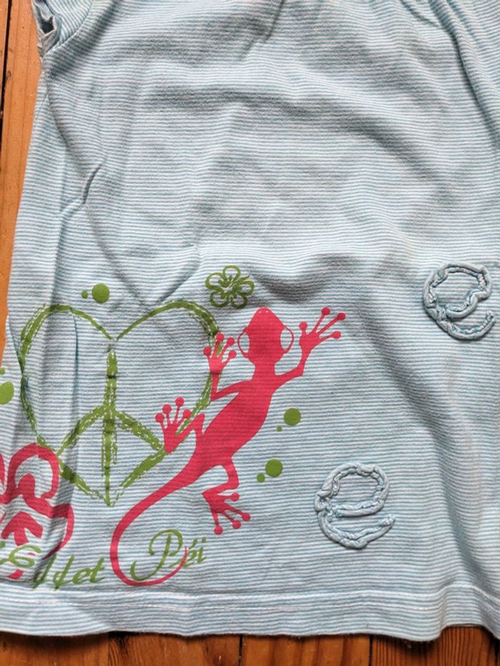 Tee shirt long en coton, à rayures bleues claires et motif gecko, taille 4 ans, en bon état Réduction sur les lots