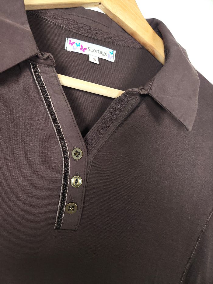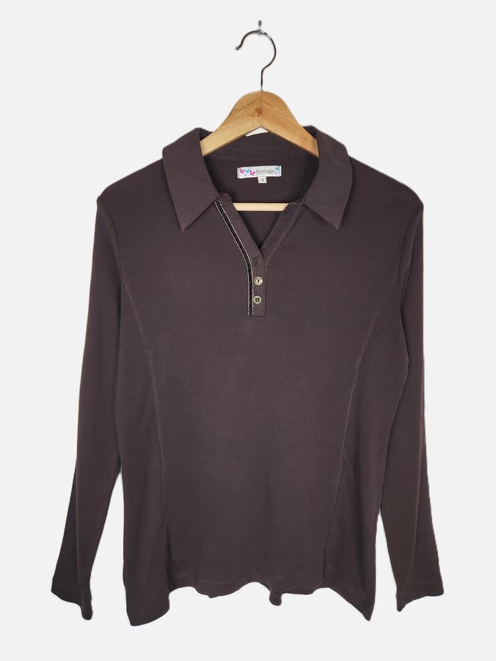 Marque : Scottage Couleur : Marron Taille : L (Taille 3) Style : Manches longues, polo Matière : 100% Coton État : Très bon état (voir photos) 📦 Expédition rapide et soignée sous 24 à 48 heures ouvrées. 🚚 N'hésitez pas à consulter mes autres articles en vente pour bénéficier d'un envoi groupé.