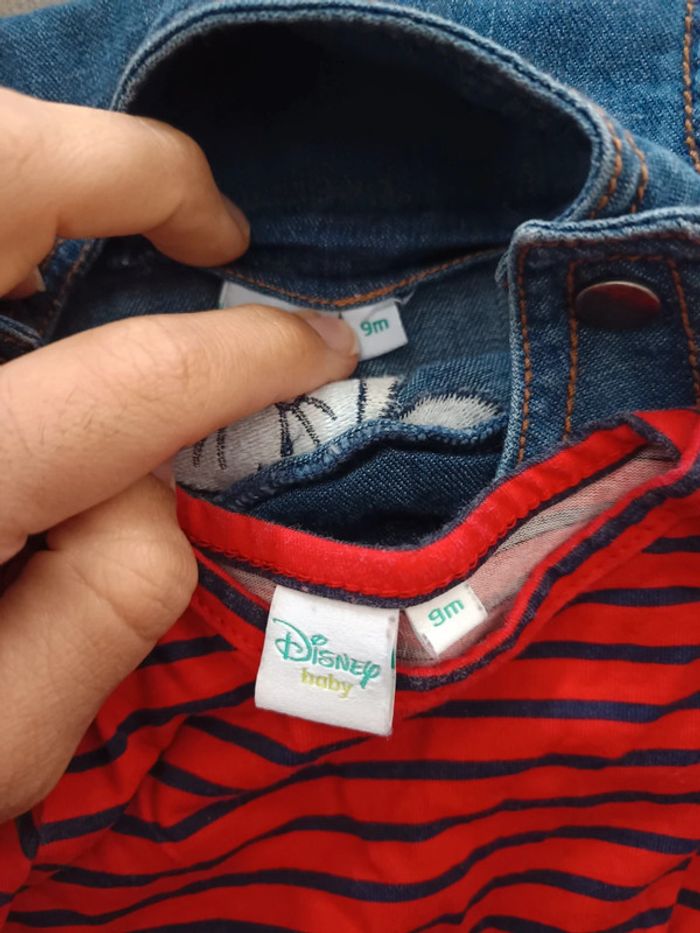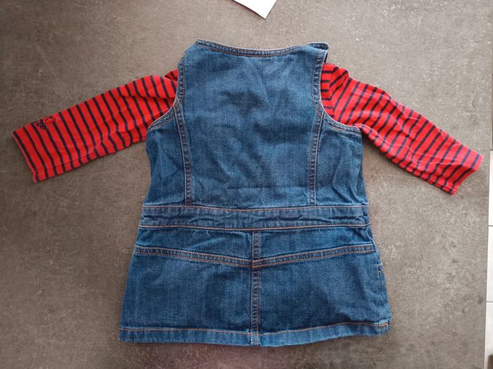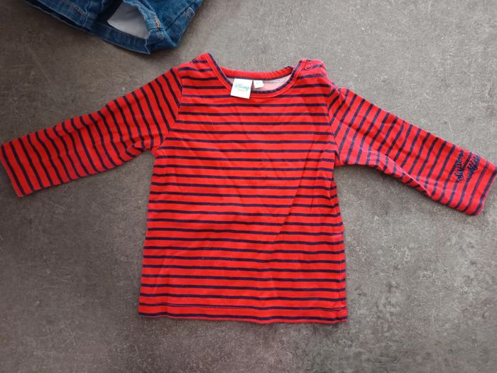 Ensemble 2 pièces : - 1 haut rouge à rayures noires, - 1 robe salopette avec la tête de Minnie Comme neuf, porté qu'une fois ! Taille 9 mois #vetementbebefille9moisjustine182129