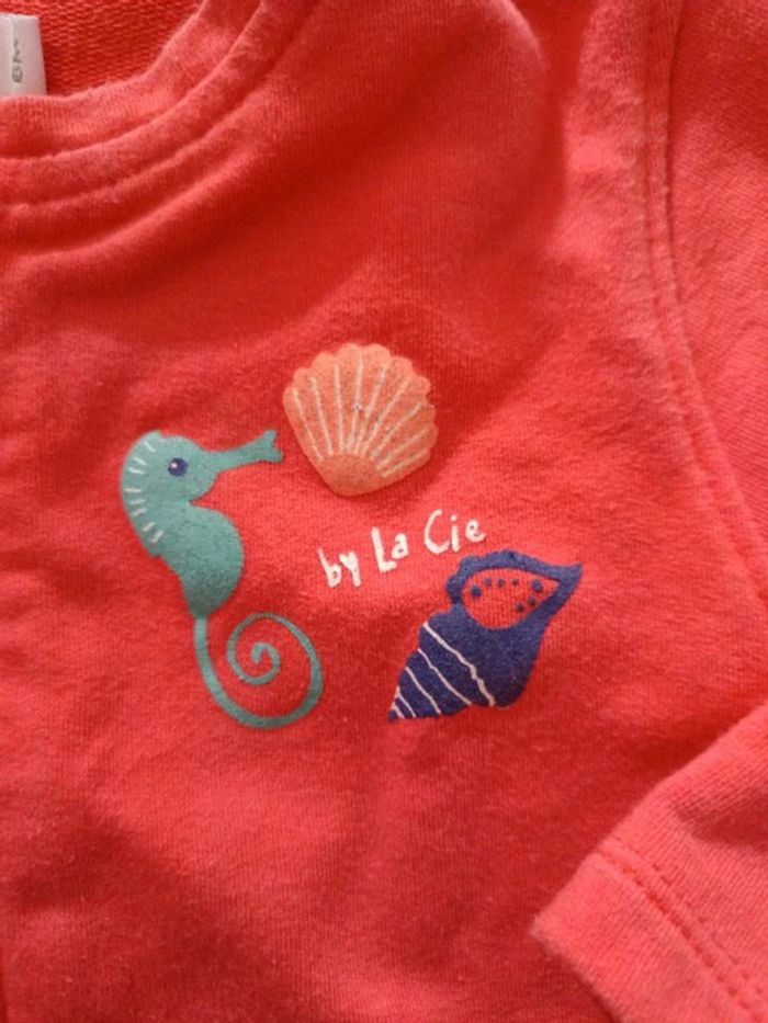 Gilet orange à fermeture éclair, Motifs hippocampe, étoile de mer et coquillages, Très bon état, Taille 6 mois #vetementbebefille6moisjustine182129