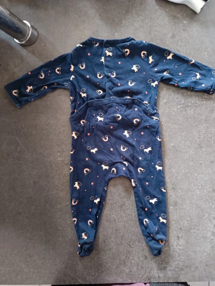 Pyjama en coton bleu marine motifs licornes 🦄 et arc en ciel 🌈, Bon état, bien porté Taille 9 mois #vetementbebefille9moisjustine182129