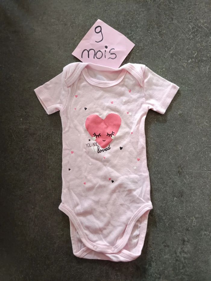 Body rose manches courtes motif coeur et inscription "you are so loved" NEUF jamais porté ! Taille 9 mois #vetementbebefille9moisjustine182129