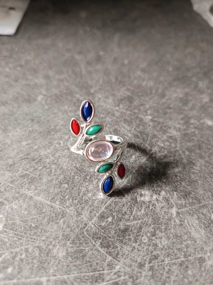 Bague avec pierres bleues, rouges,vertes, et une transparente au milieu, NEUVE (juste essayée mais trop grande) Taille 57 #bijouxfemmejustine182129