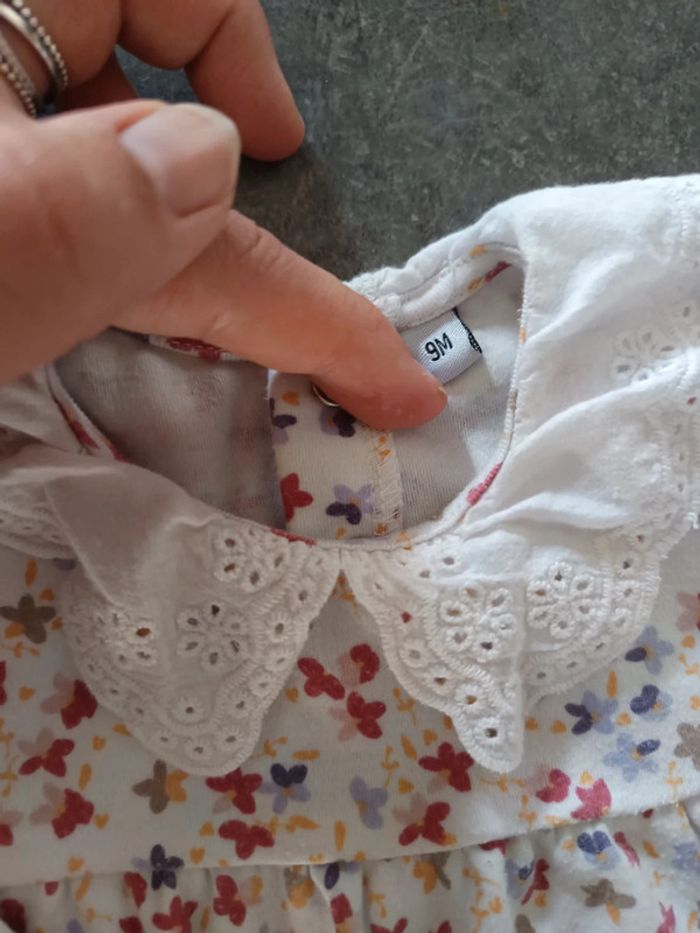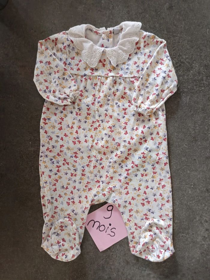 Pyjama léger, Avec col claudine, Blanc motifs fleuris, Bon état, pas de tâches ni de trous. Taille 9 mois #vetementbebefille9moisjustine182129