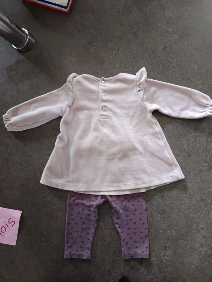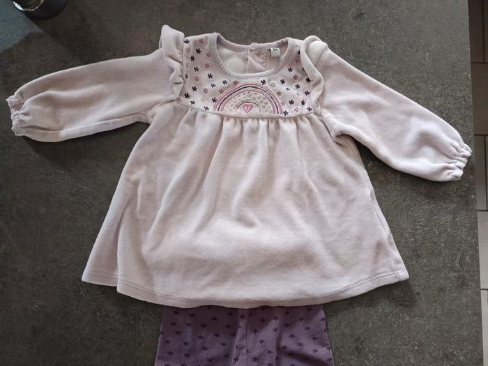 Ensemble 2 pièces : - 1 tunique en velours couleur lilas motifs fleurs et arc en ciel 🌈 - 1 legging violet motifs fleurs Très bon état, Taille 6 mois #vetementbebefille6moisjustine182129