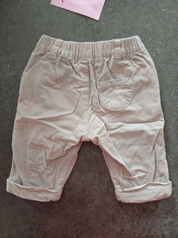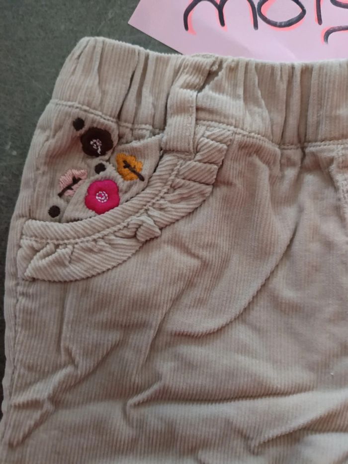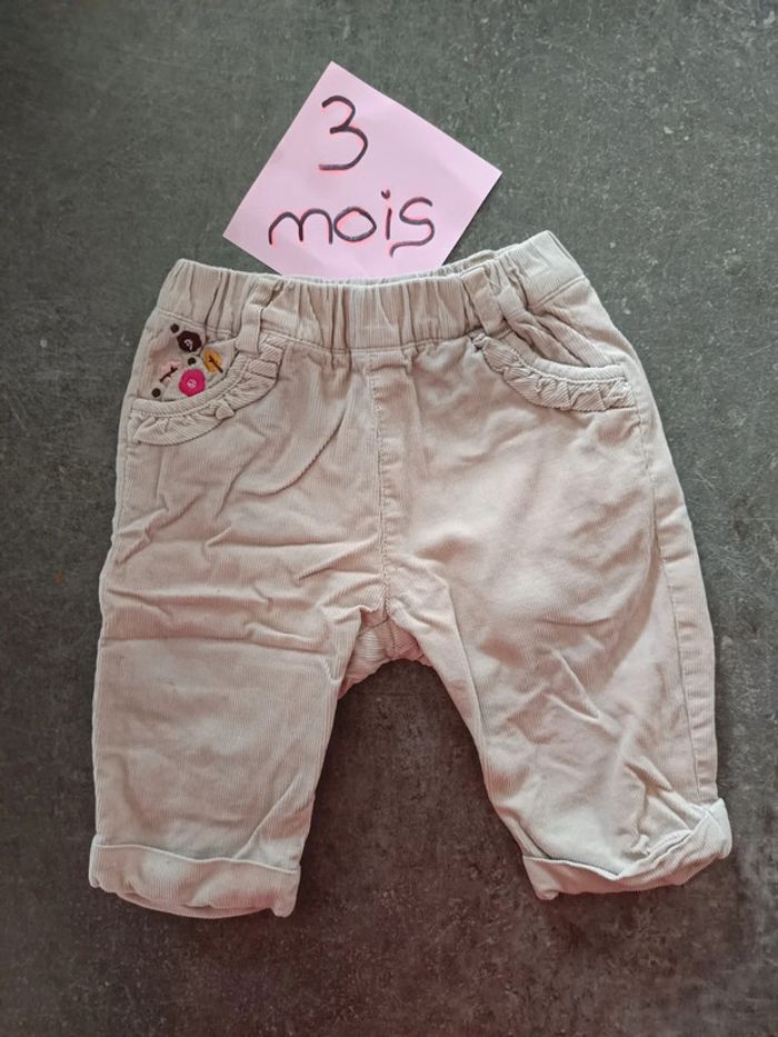 Pantalon beige en velours, Motifs fleurs au niveau de la poche Très bon état, peu porté ! Taille 3 mois #vetementbebefille3moisjustine182129
