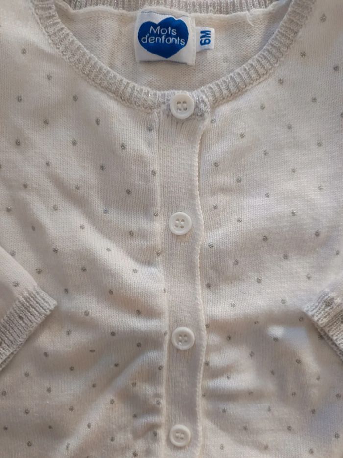 Gilet blanc avec pois argentés, Très bon état, Taille 6 mois #vetementbebefille6moisjustine182129