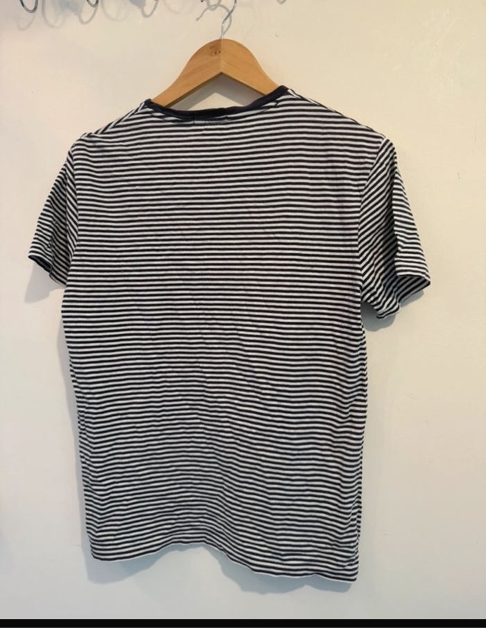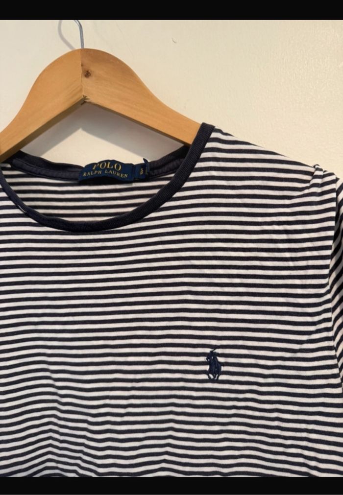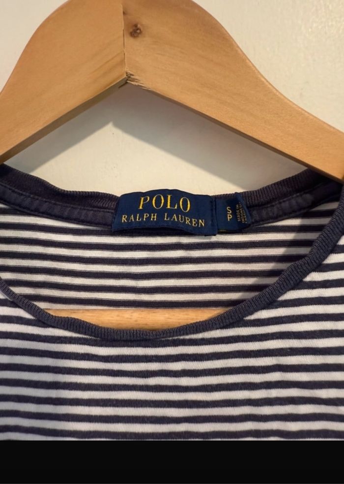 📏 Dimension Aisselle à aisselle : 49 cm 👕Taille : S 🧼 Très bon état - peu porté 📍 Marque emblématique Ralph Lauren, logo brodé sur la poitrine 👕 Couleur : blanc avec rayures bleu marine 💯 Authentique et confortable, idéal pour un look chic et décontracté