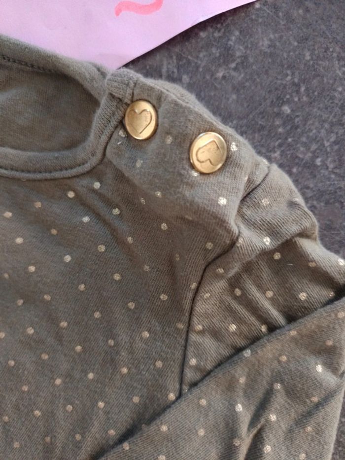 Robe kaki à pois dorés, EXCELLENT état, portée que 2 fois ! Taille 68 cm (6 mois) #vetementbebefille6moisjustine182129