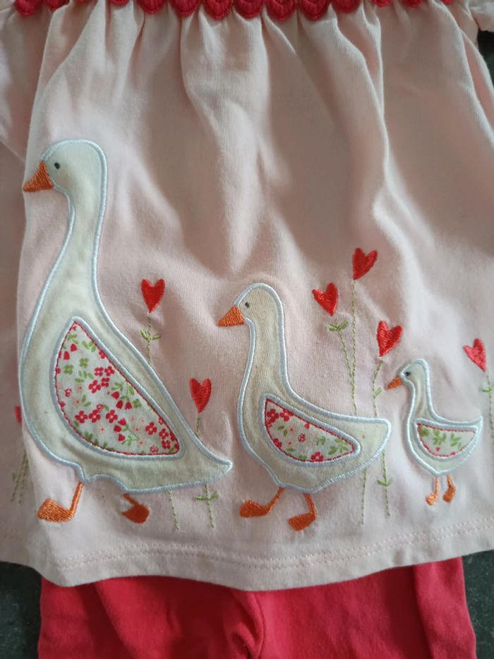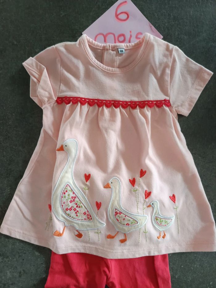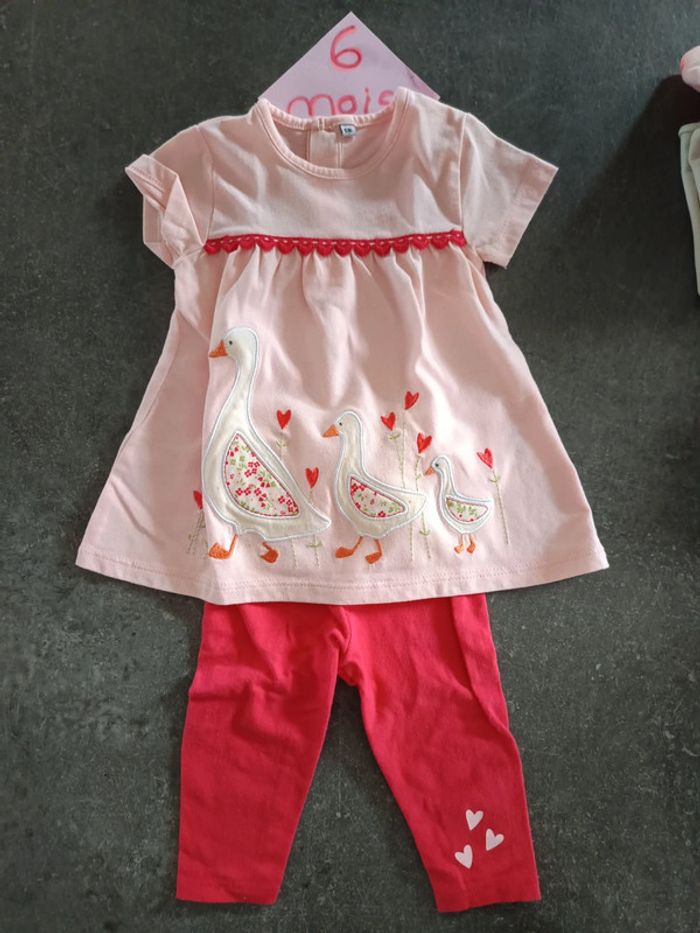 Ensemble 2 pièces : - 1 tunique rose clair avec motifs oies - 1 legging avec 3 coeurs NEUF jamais porté ! Taille 6 mois #vetementbebefille6moisjustine182129