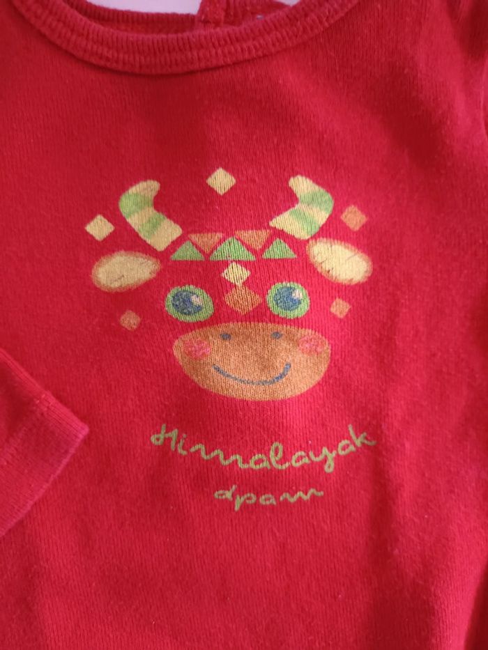 Body manches longues, Rouge avec dessin d'un yak Très bon état, Taille 6 mois #vetementbebefille6moisjustine182129