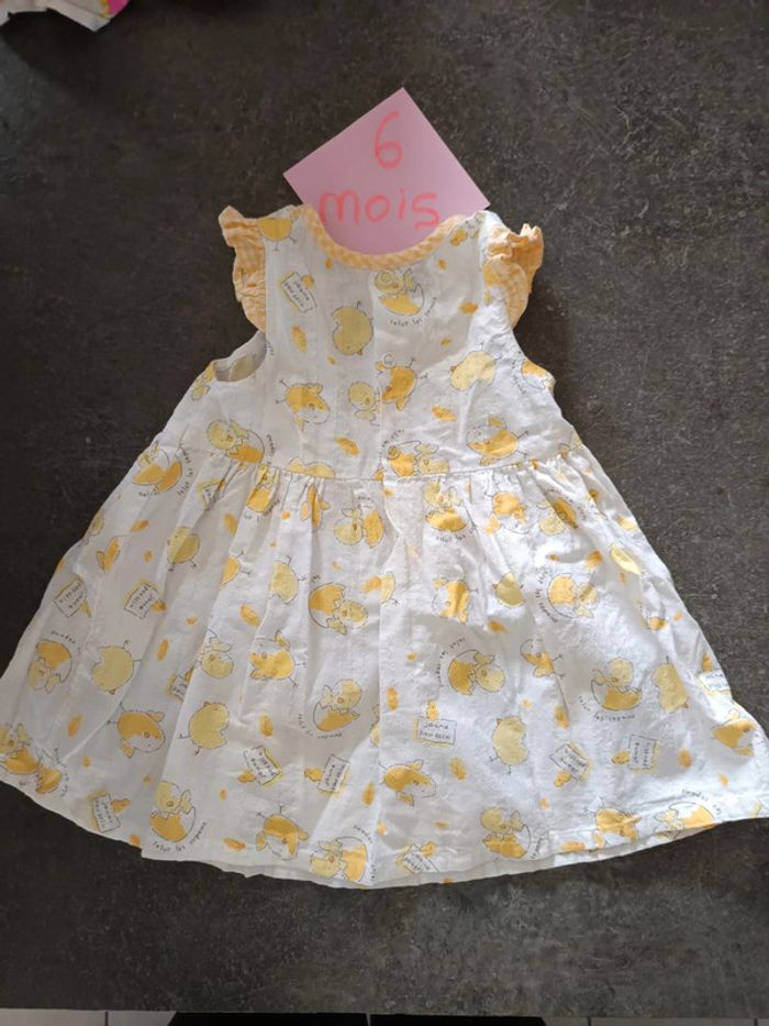 Jolie petite robe d'été blanche avec des petits poussins, Très bon état, Taille 6/9 mois (plus d'étiquette) #vetementbebefille6moisjustine182129 #vetementbebefille9moisjustine182129