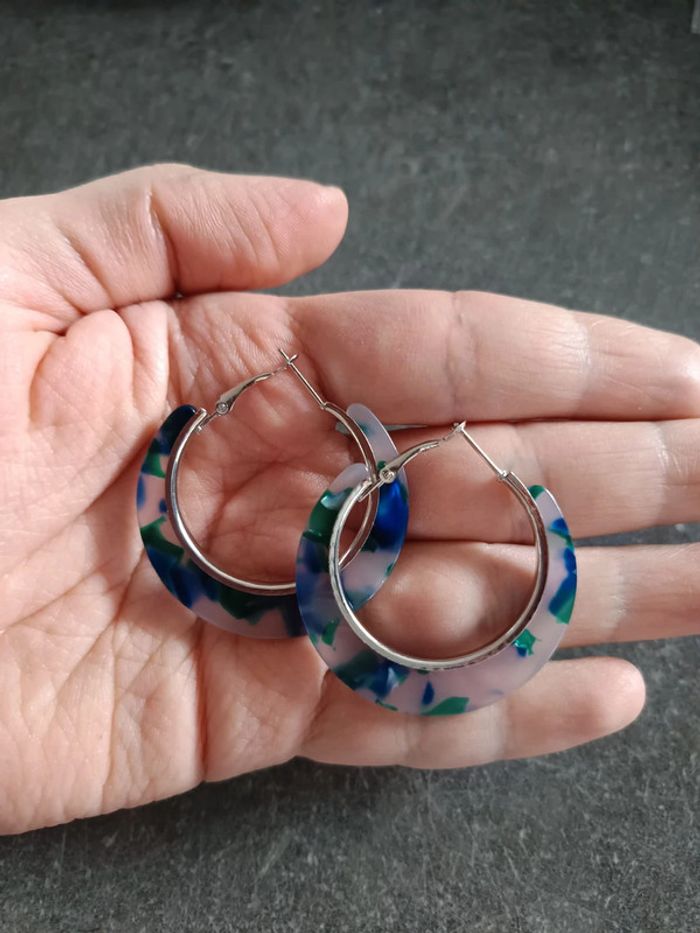 Boucles d'oreilles anneaux bleus et vert - photo numéro 3