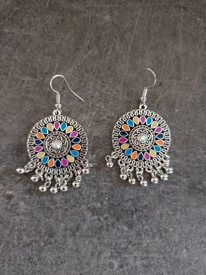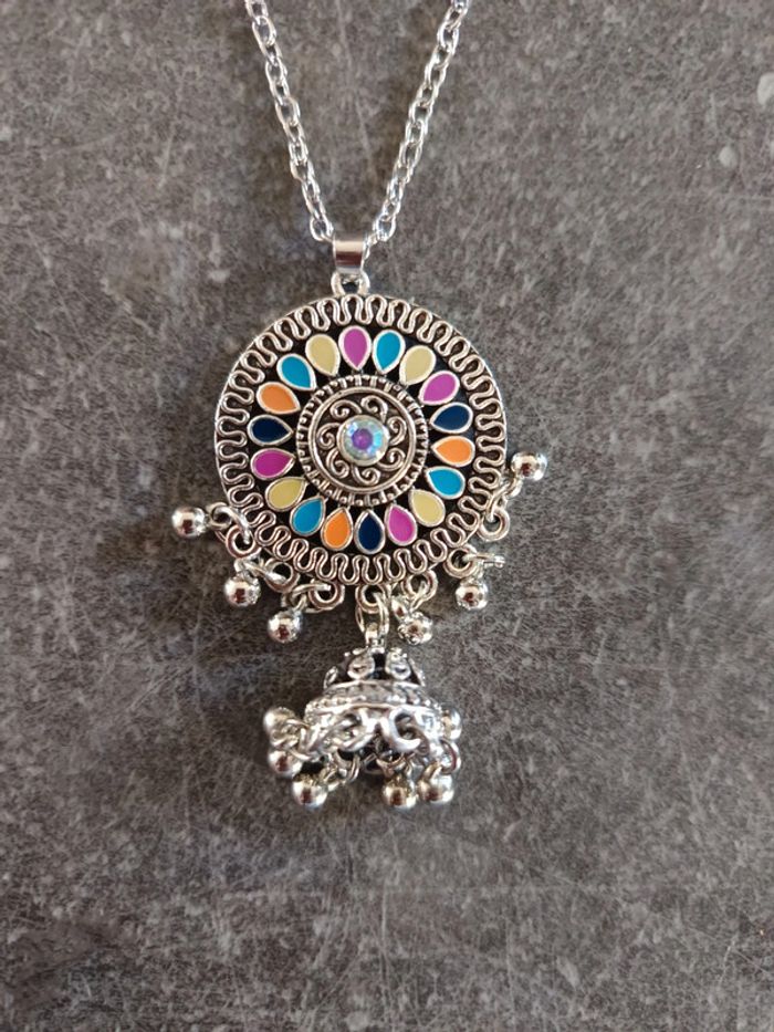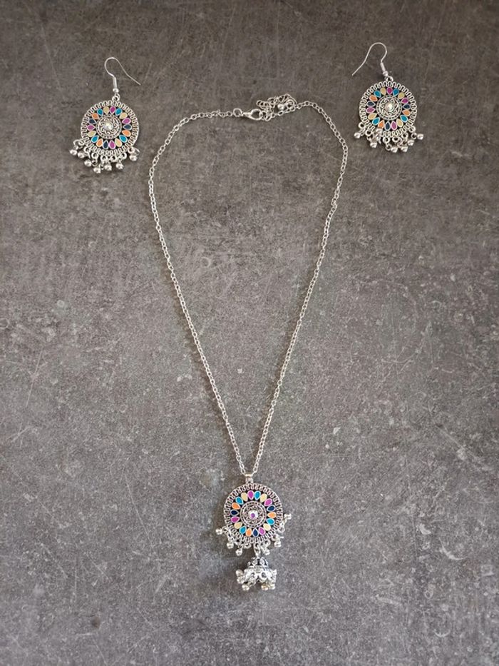 Parure collier + boucles d'oreilles argenté et multicolore, NEUVE jamais portée ! #bijouxfemmejustine182129