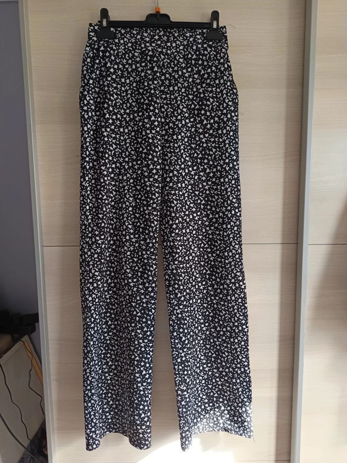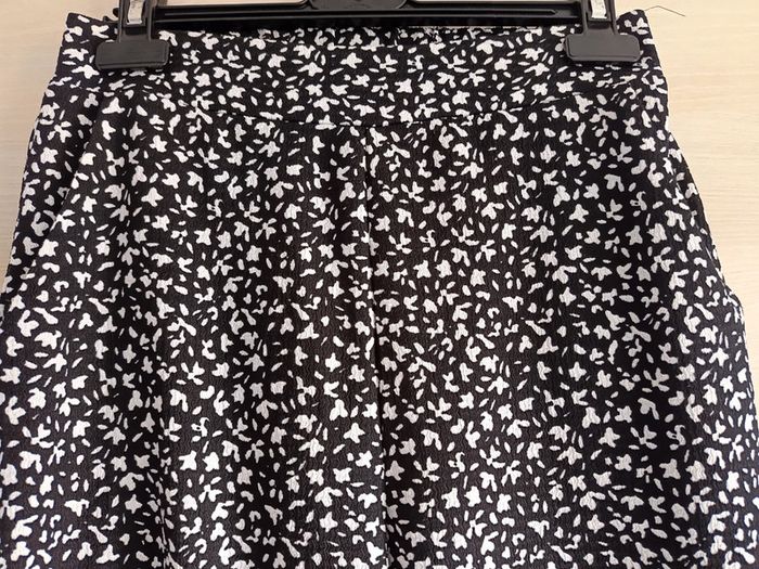 Pantalon large fluide noir à motifs blanc, 2 poches, EXCELLENT état, comme neuf ! Taille XS #vetementfemmeXSjustine182129