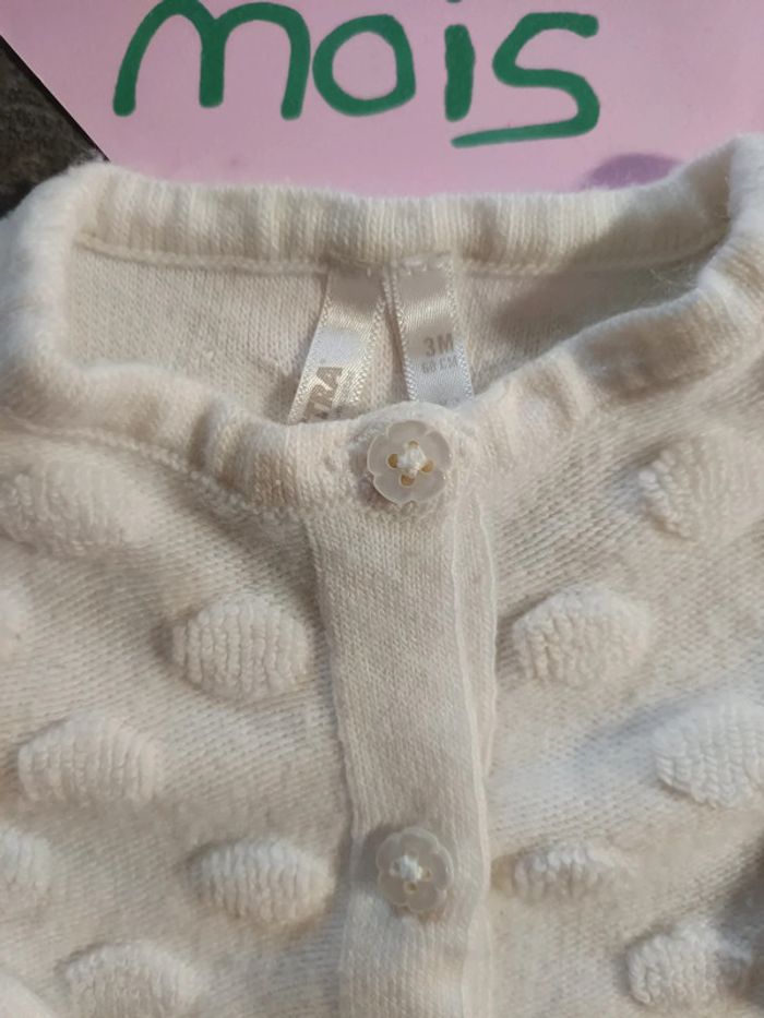 Gilet blanc, Très bon état, Taille 3 mois #vetementbebefille3moisjustine182129