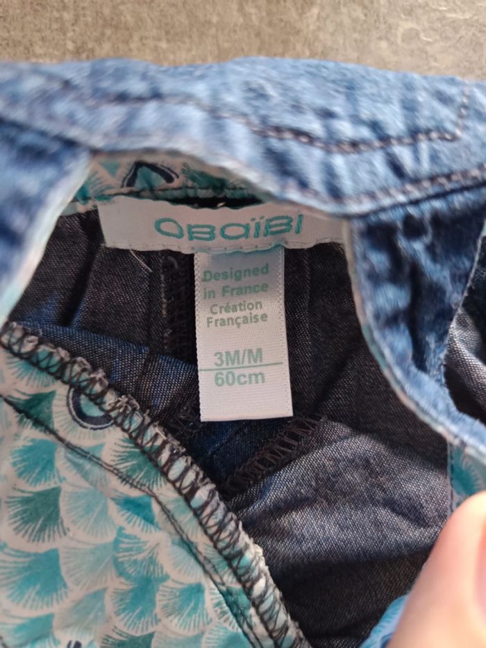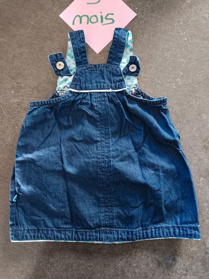 Robe salopette bleue avec coeurs bleus, Très bon état, Taille 3 mois #vetementbebefille3moisjustine182129