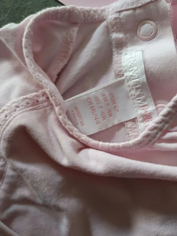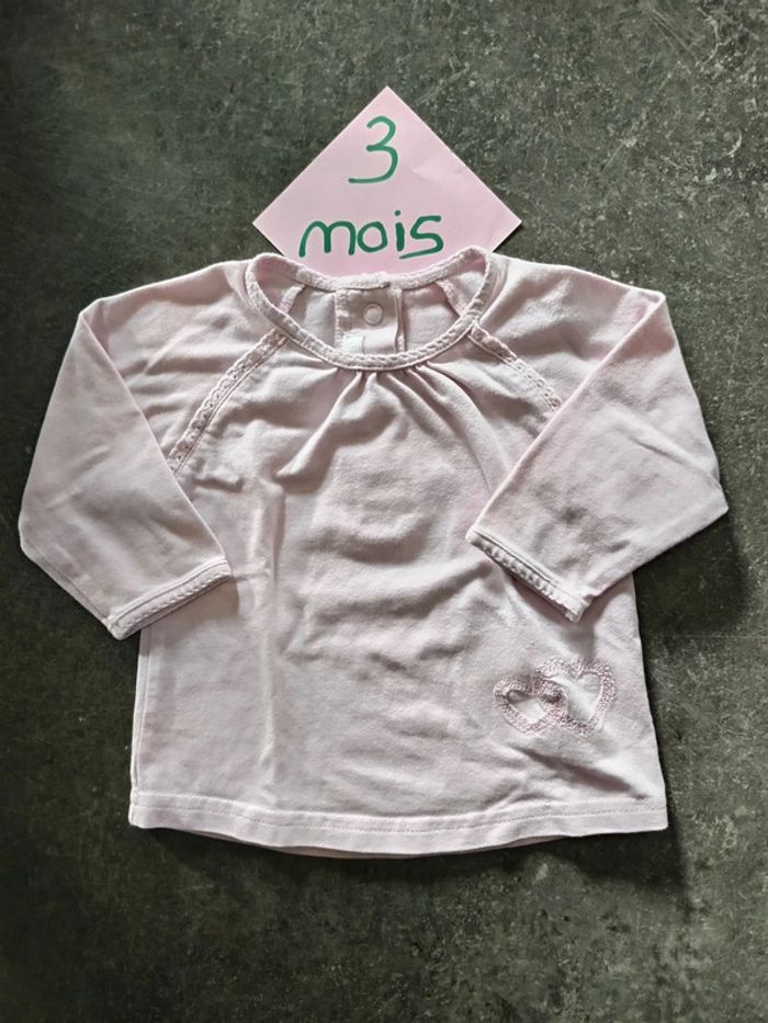 T-shirt manches longues, Rose pâle, détails dentelle et coeurs, Très bon état, peu porté ! Taille 2-4 mois #vetementbebefille3moisjustine182129