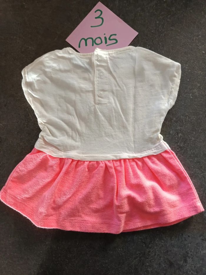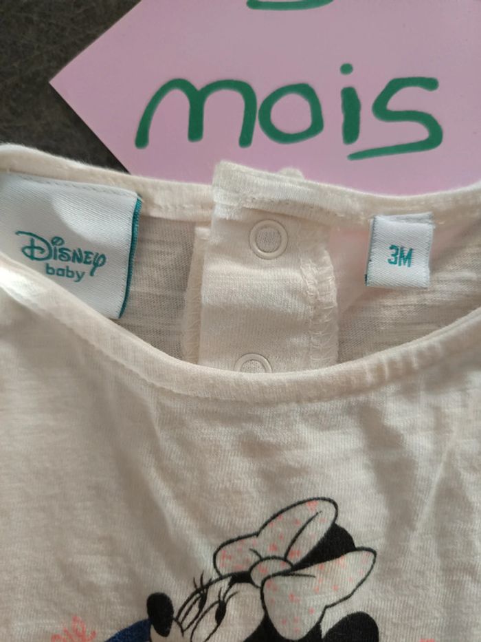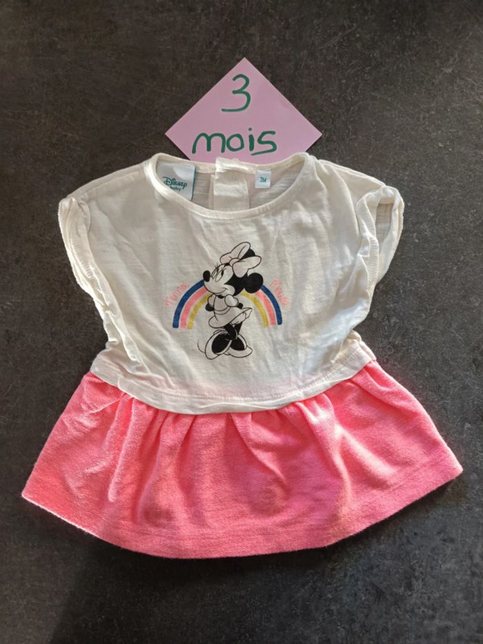 Tunique Minnie, Couleur crème et rose fluo, NEUVE jamais portée ! Taille 3 mois #vetementbebefille3moisjustine182129