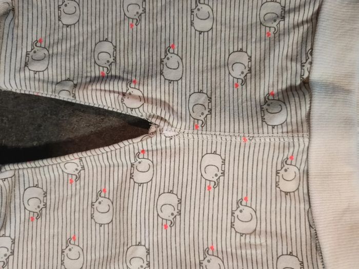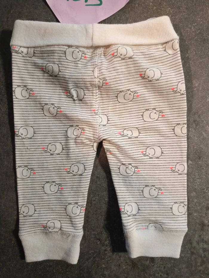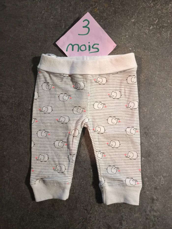 Pantalon blanc à rayures et motifs éléphants, Très bon état, Taille 3 mois #vetementbebemixtejustine182129 #vetementbebefille3moisjustine182129