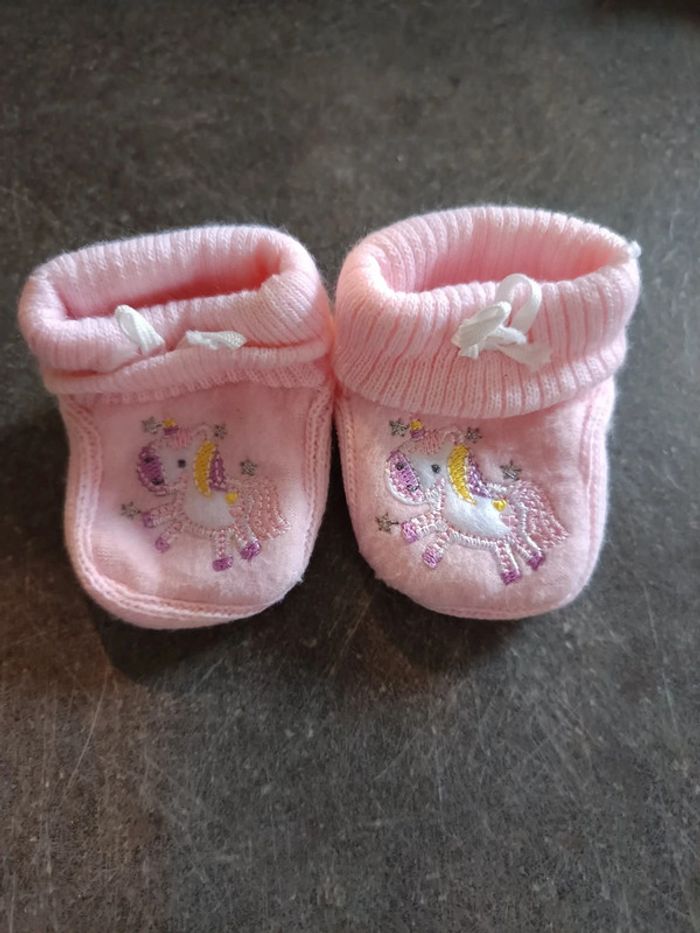Chaussons roses avec motif licorne, Taille Naissance NEUFS jamais portés juste lavés ! #vetementbebefille0moidmsjustine182129 #vetementbebefille1moisjustine182129