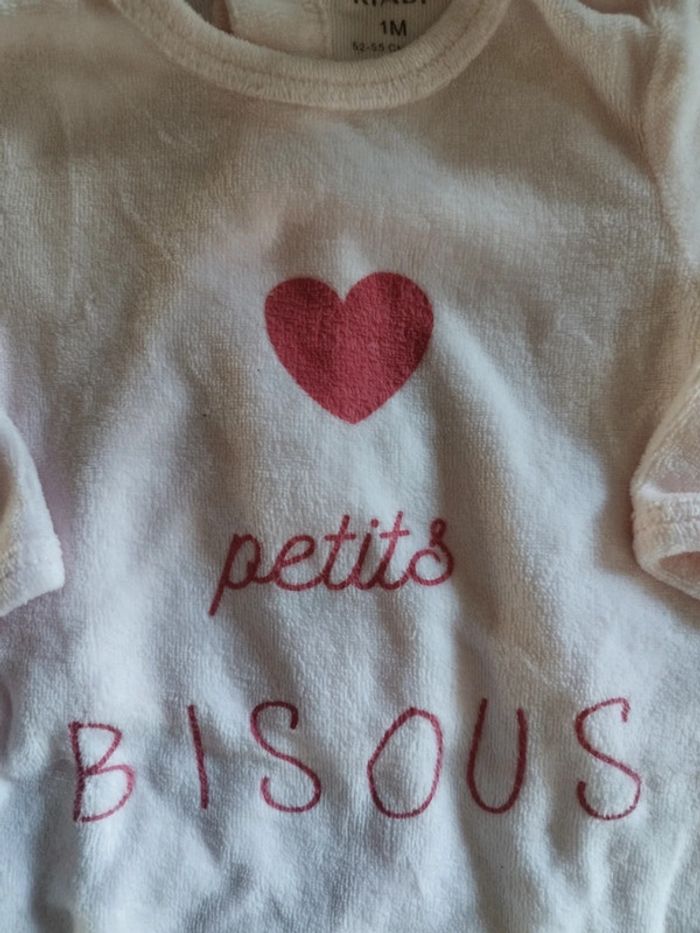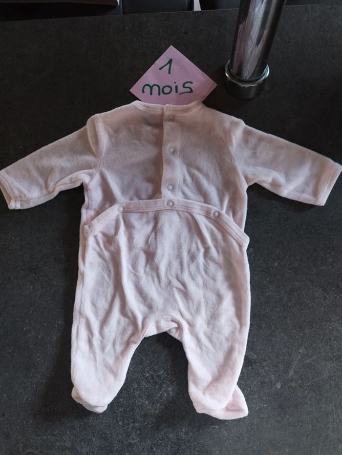 Pyjama rose en velours, inscription "petits bisous" NEUF jamais porté ! Taille 1 mois #vetementbebefille1moisjustine182129