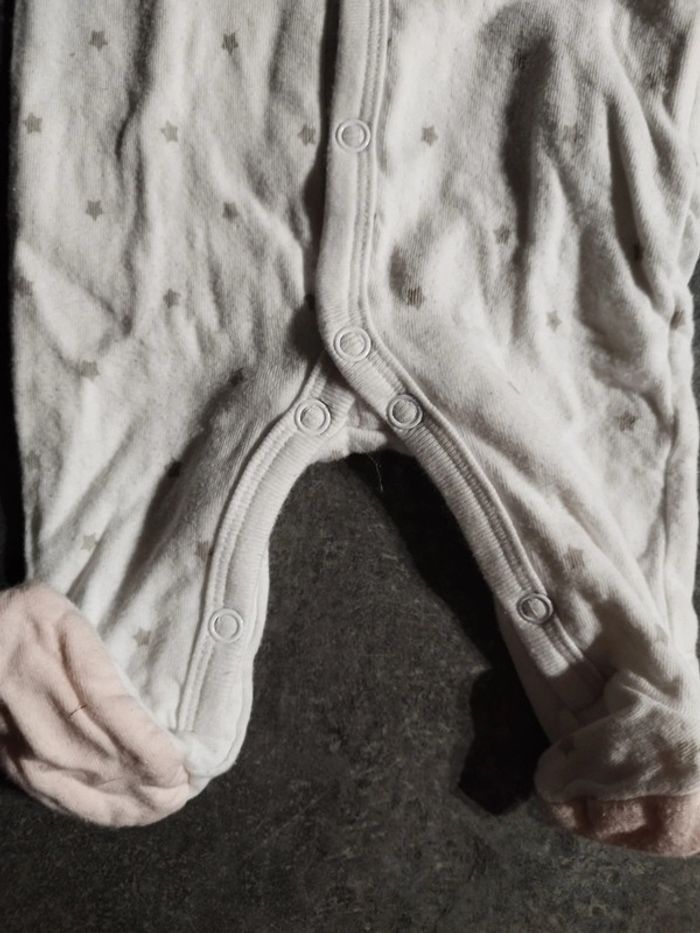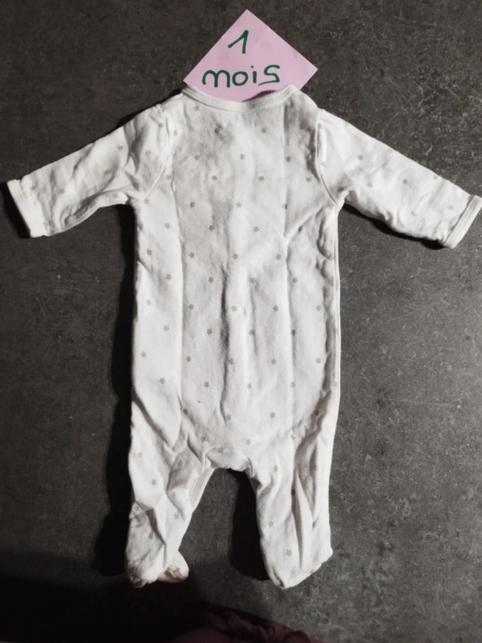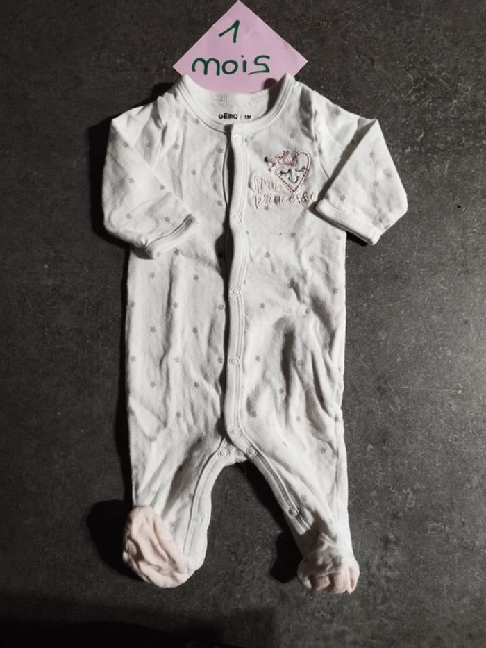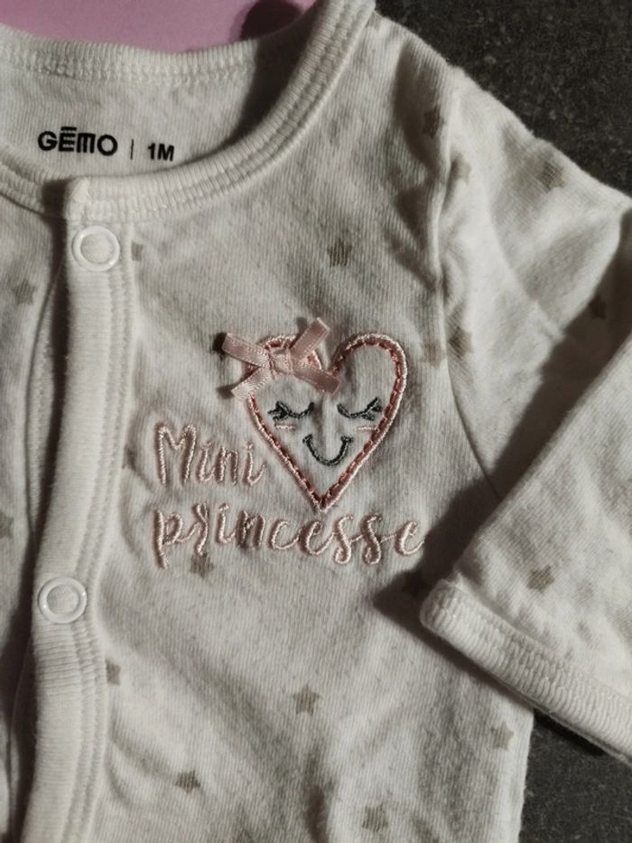 Pyjama blanc avec coeur et inscription "mini princesse" Ouverture sur le devant par pression, Très bon état, Taille 1 mois #vetementbebefille1moisjustine182129