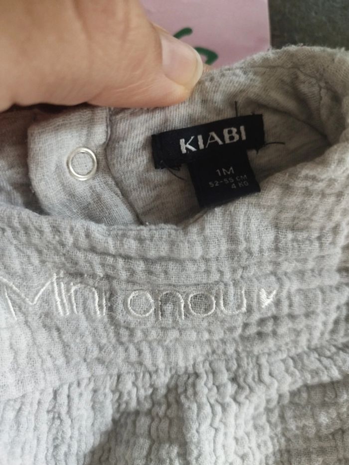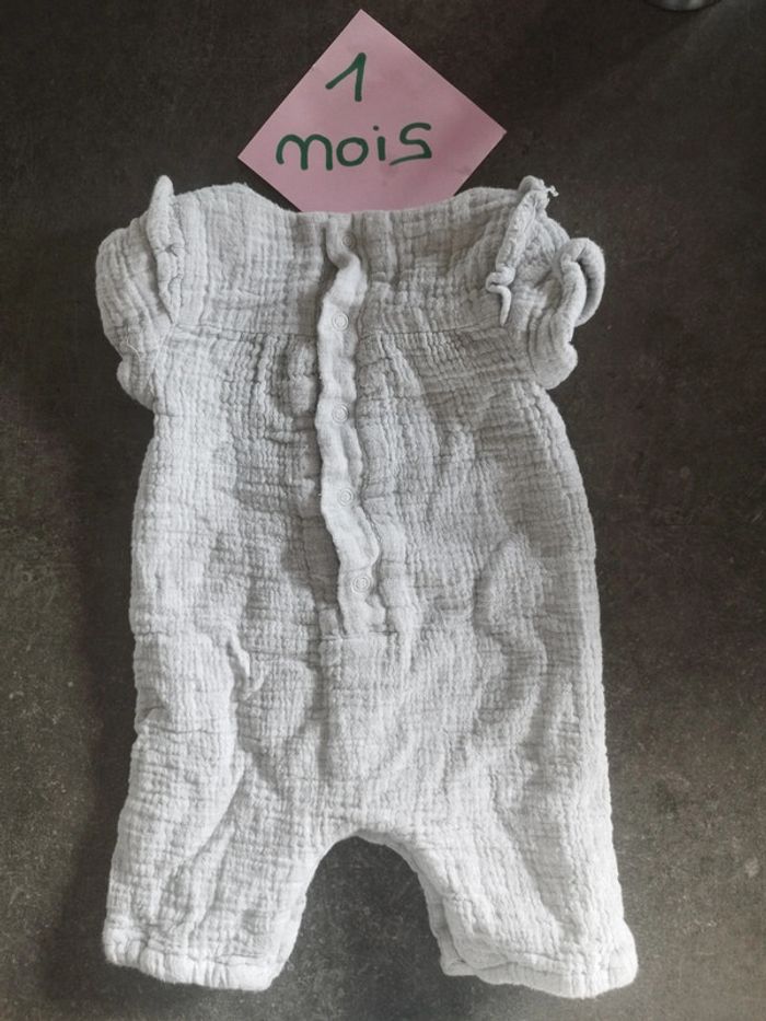 Combinaison grise en gaze de coton, plutôt épaisse avec inscription "mini choux" Très bon état, Taille 1 mois #vetementbebefille1moisjustine182129