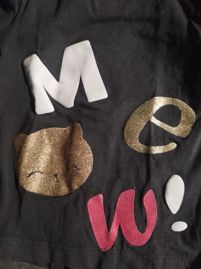 T shirt manches longues tête de chat et inscription "MEW !" très bon état, peu porté ! Taille 1 mois #vetementbebefille1moisjustine182129