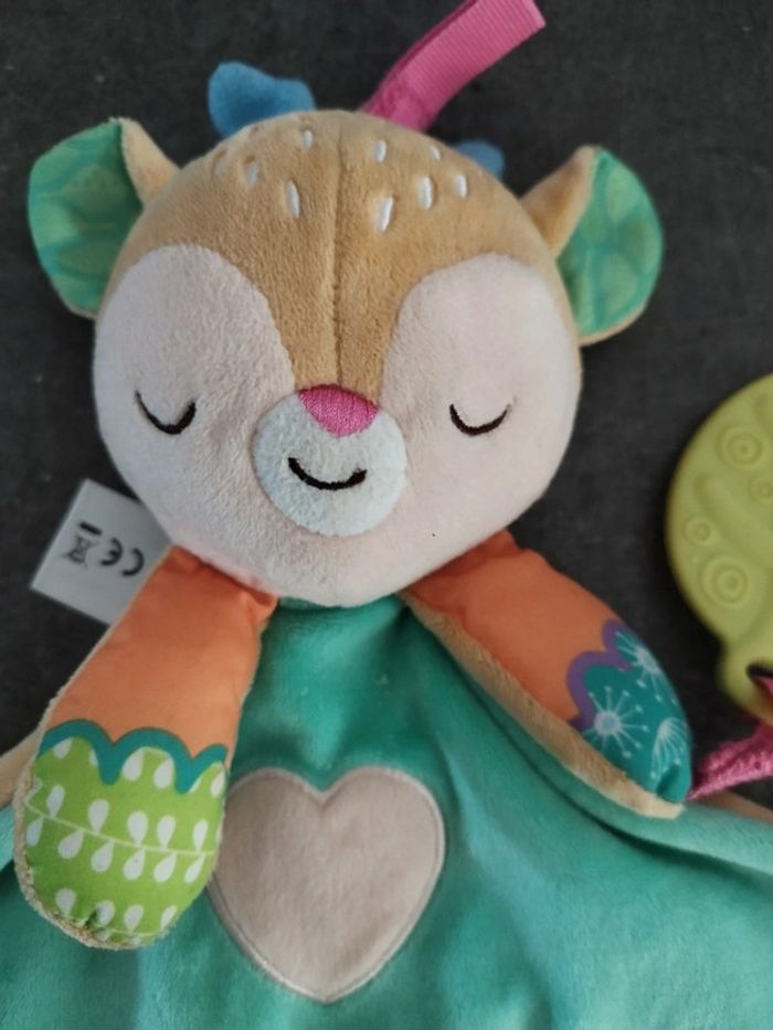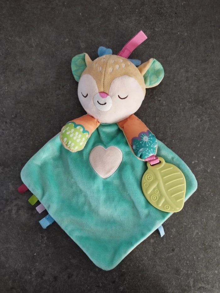 Doudou musical "Tifan mon doudou berceuse" Fait de la musique pour aider bébé à s'endormir, Peut s'arracher a la poussette ou au lit, il y a un anneau de dentition en forme de feuille pour quand bébé fait ses dents. EXCELLENT état, ma fille n'y a presque pas touché donc comme neuf ! #jouetbebejustine182129