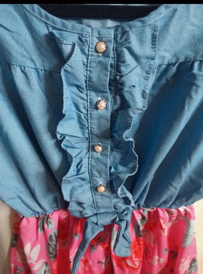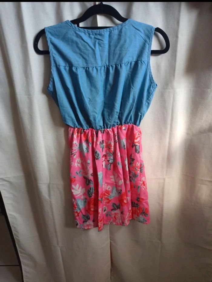 Robe été légère en tissu, le haut est bleu avec des boutons et le bas rose avec des fleurs, La robe est neuve jamais eu l'occasion de la mettre.. Taille M J'ai la même pour bébé en taille 80cm neuve également #vetementfemmeMjustine182129