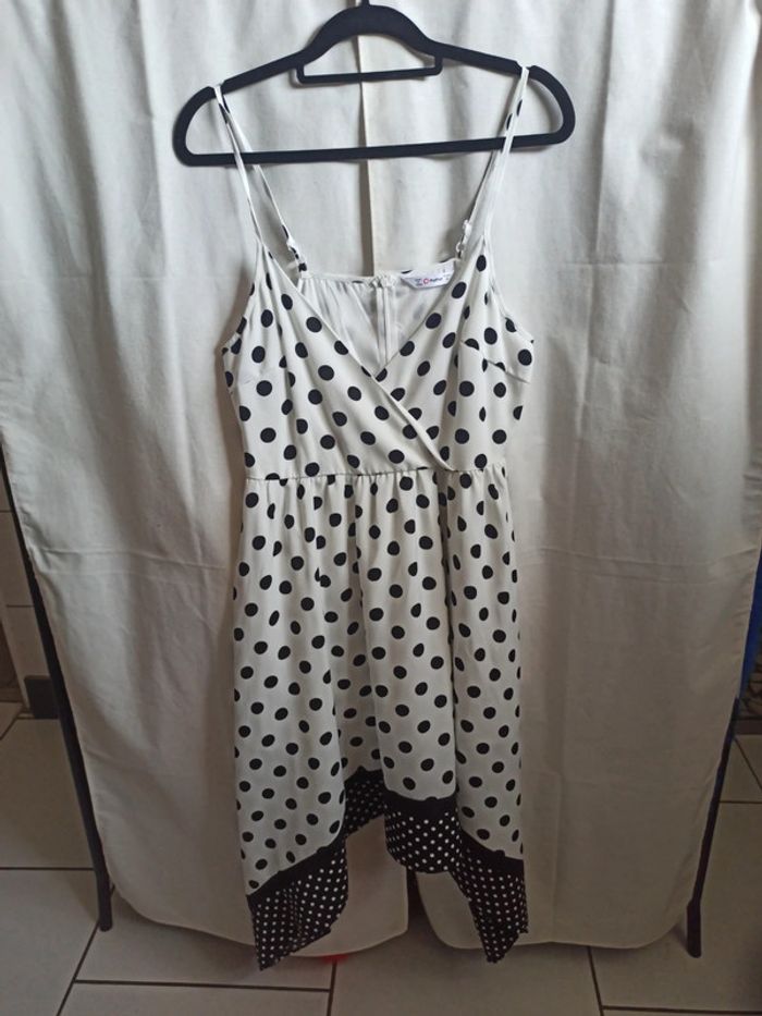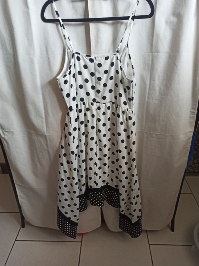 Robe asymétrique blanche à pois noirs, NEUVE jamais portée (trop petite pour moi) Taille M #vetementfemmeMjustine182129