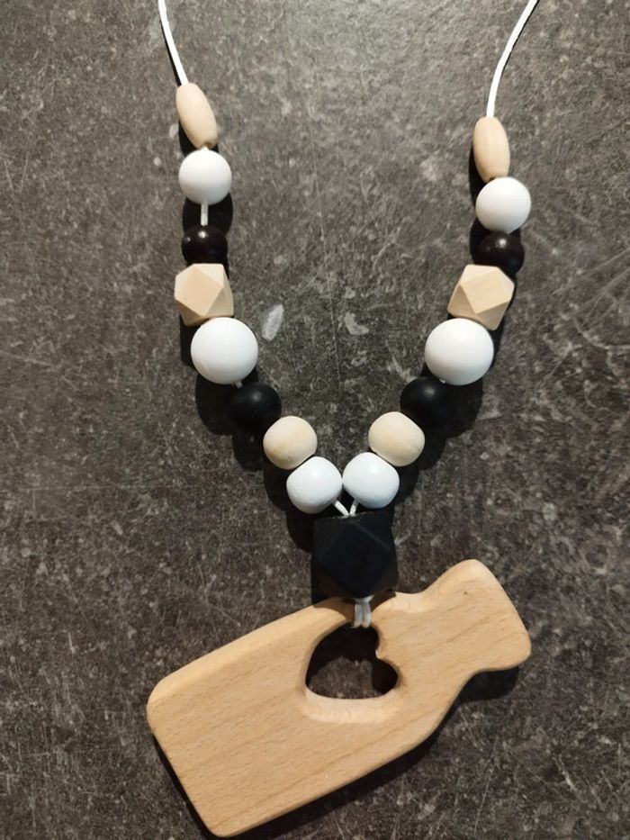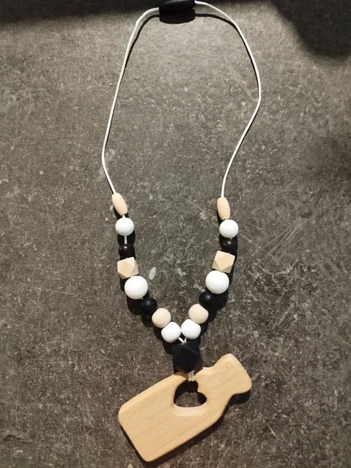 Collier d'allaitement "coeur en bouteille" en perles de silicone noires et blanches et perles de bois. NEUF jamais porté, fait par mes soins. N'hésitez pas à me demander si vous souhaitez voir une photo du collier porté 😉 #bijouxfemmejustine182129