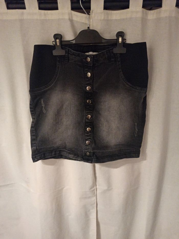 Jupe en jean de grossesse noire et grise, portée quelques fois, en très bon état. Taille 40 #jupedegrossesse #taille40 #vetementdegrossessejustine182129