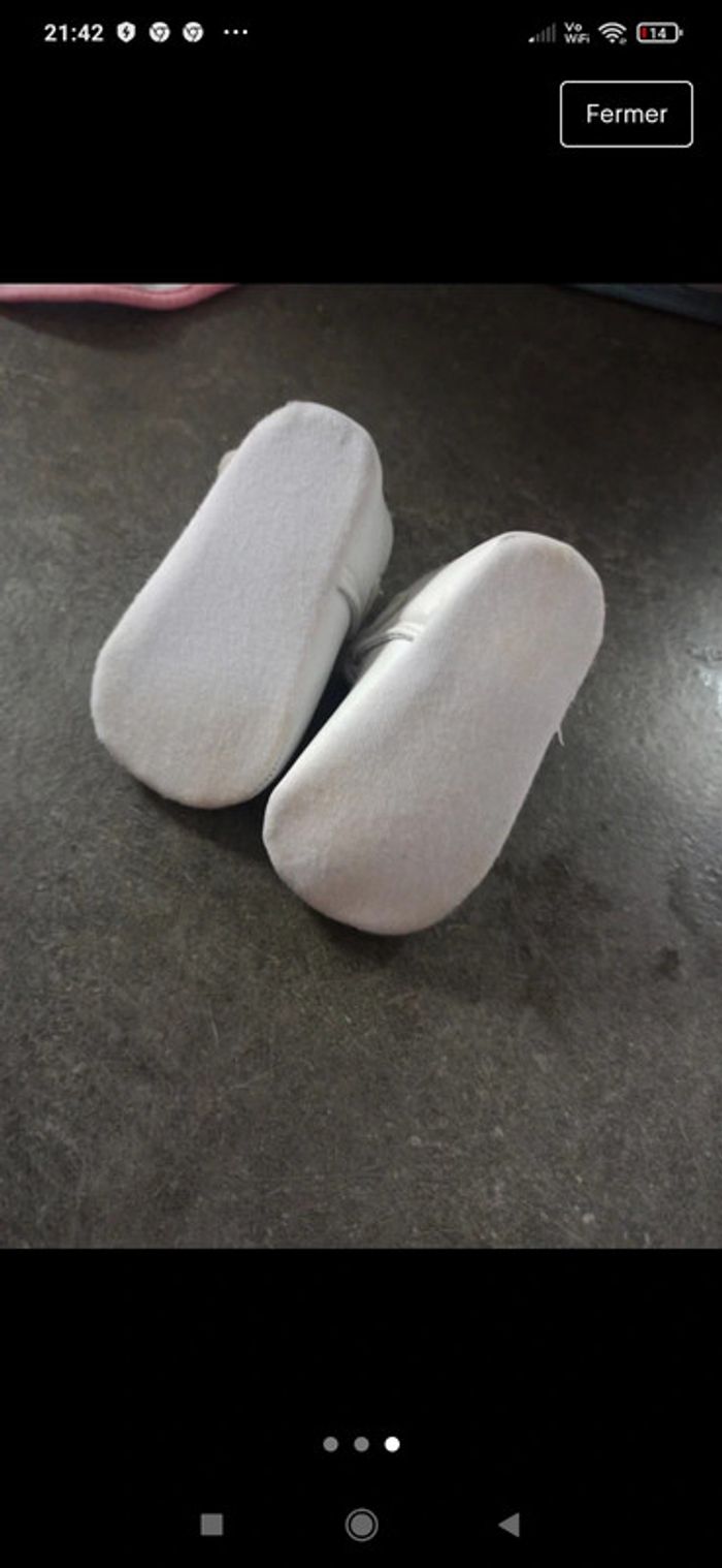 Chaussures blanches bébé, NEUVES jamais portées mais le dessous a un peu jauni (voir photo) #chaussuresbebefillejustine182129