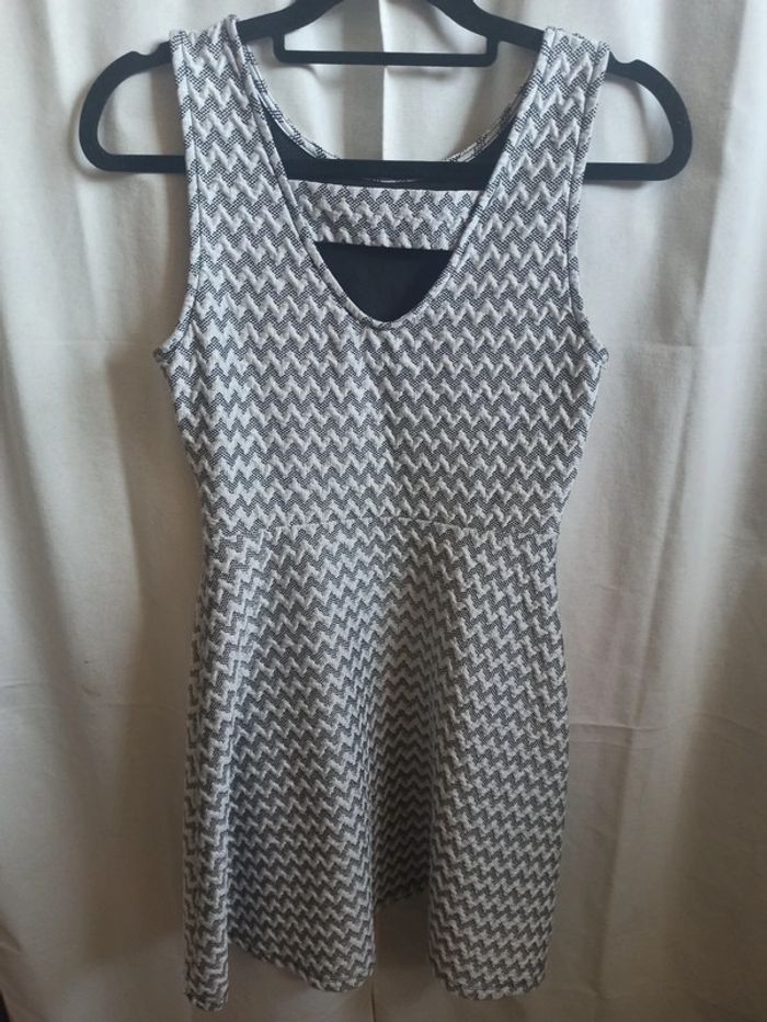 Robe d'été grise et blanche à stries. Haut du dos un peu dénudé. NEUVE jamais portée. Taille M #vetementfemmeMjustine182129