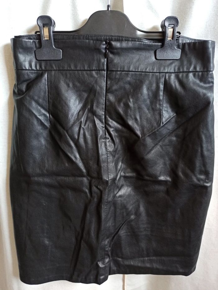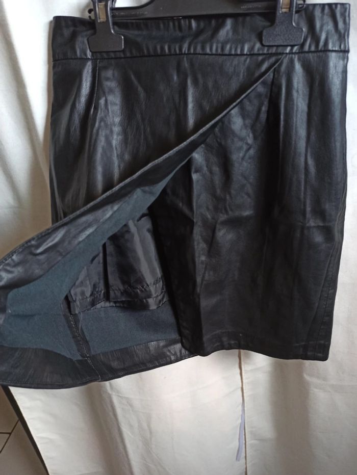 Jupe fendue sur le devant, noire en simili cuir. Très bon état, comme neuve portée une ou deux fois. Taille 38 #vetementfemmeMjustine182129