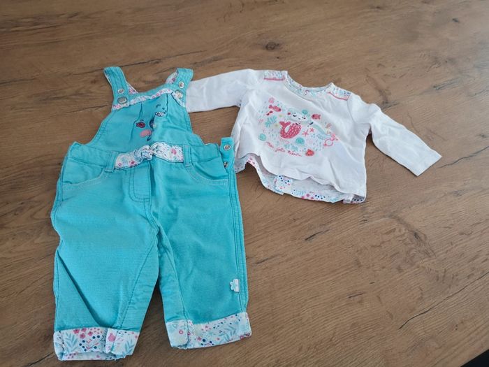 Ensemble salopette sergent major 3 mois turquoise - photo numéro 1