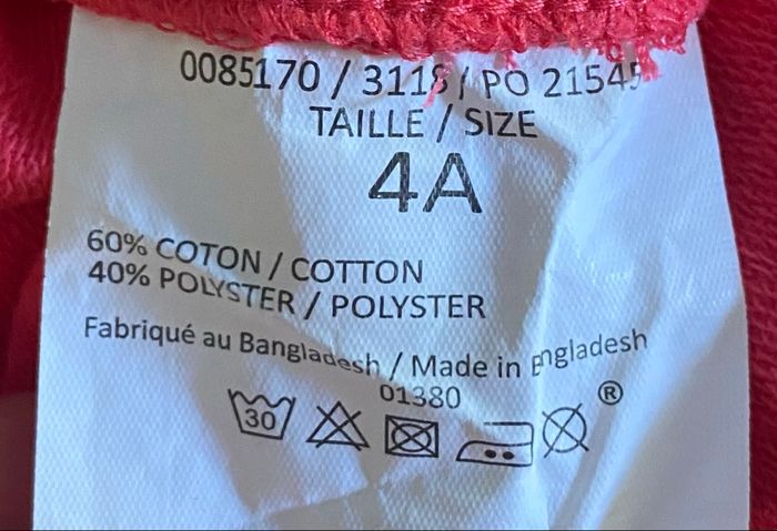 Short sans tache 4 ans 60% coton 40% polyester