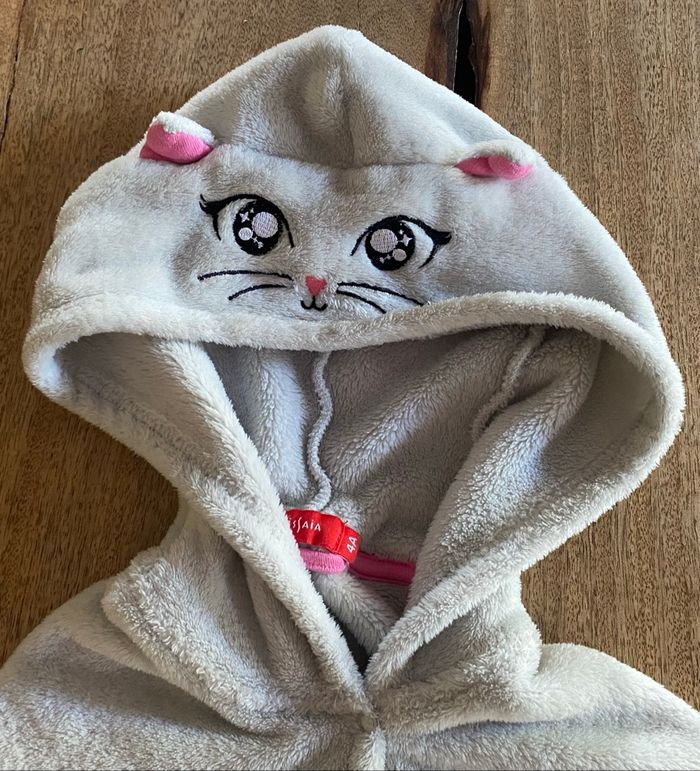 Robe de chambre cape Sans tache 4 ans Une pression en haut pour fermeture Petit manche pour passage des main voire photo Capuche en tête de chat