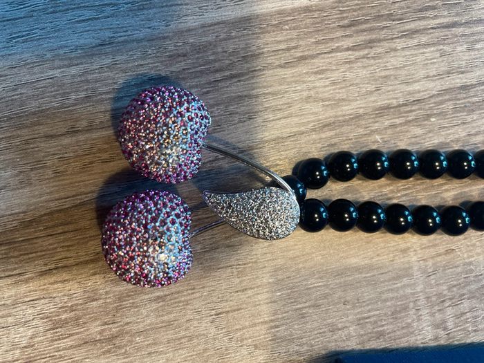 Grand collier sautoir cerise et perle Noir Swarovski - photo numéro 5